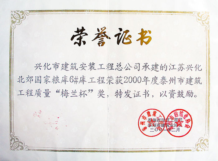興化北郊糧庫工程獲泰州“梅蘭杯”獎