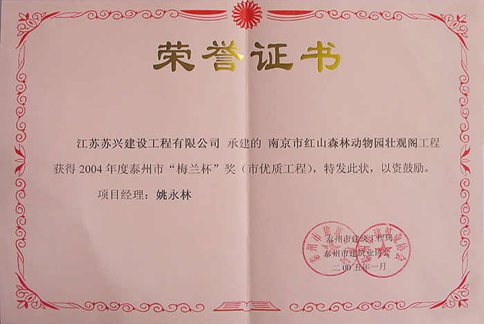 壯觀閣工程獲泰州市“梅蘭杯”獎(市優質工程)