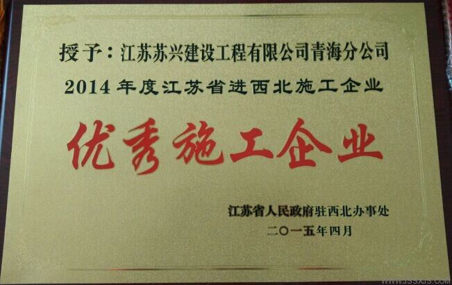 2014年度江蘇省進西北地區建築施工優秀企業(yè)