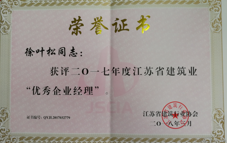 2017年江蘇省建築業(yè)優秀企業(yè)經理